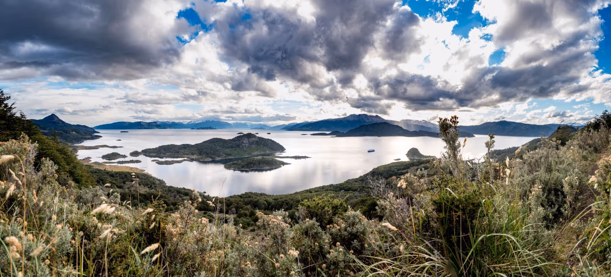 An Australis cruise ship navigating the Beagle Channel in Patagonia.