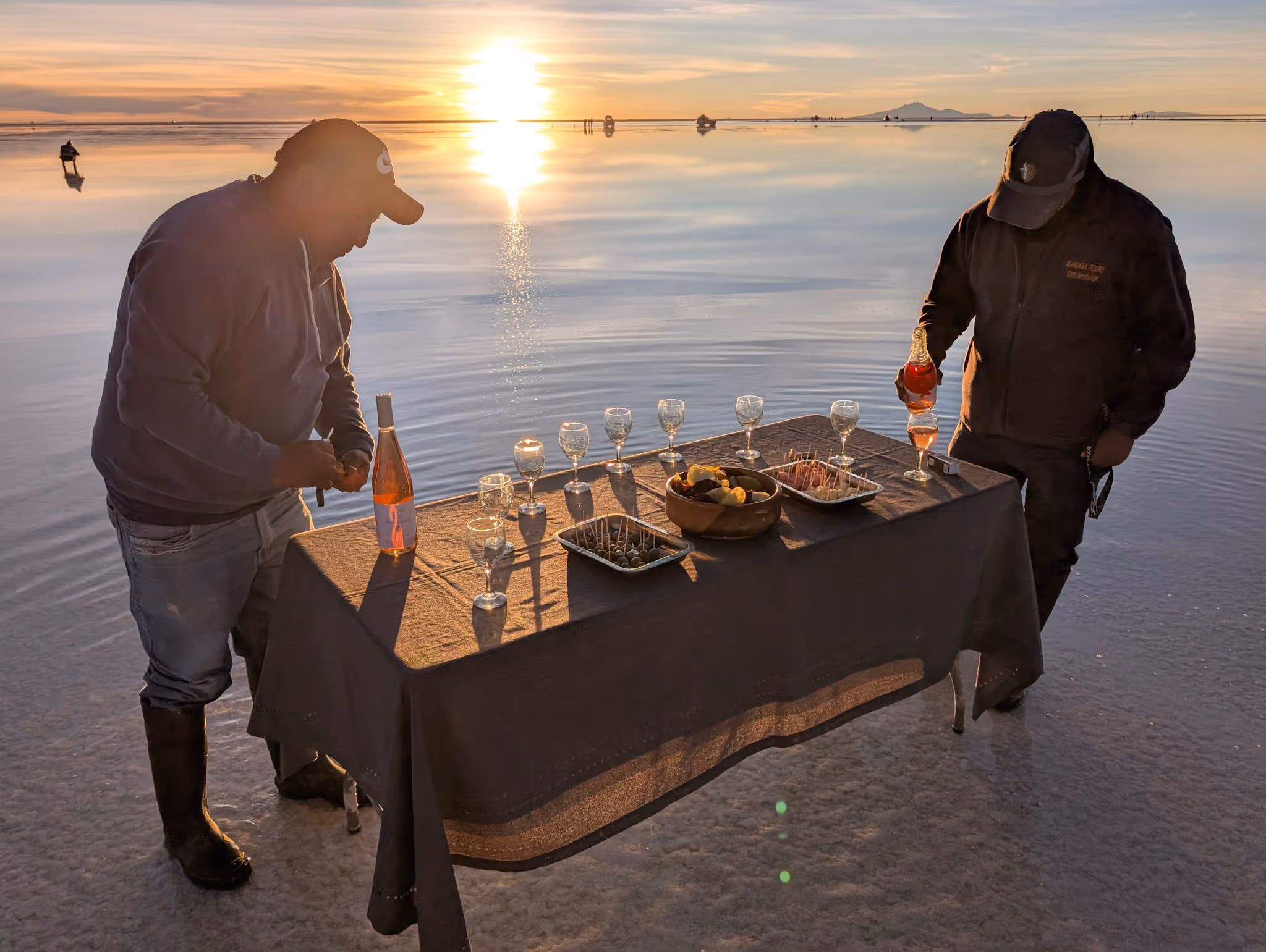 We had a day to explore the flats, driving in 4x4s through the mirror-like water, visiting salt monuments, and enjoying a picnic on the dry salt. We ended the day back in the shallow water to watch the sun set, its reflection creating a perfect mirror effect.