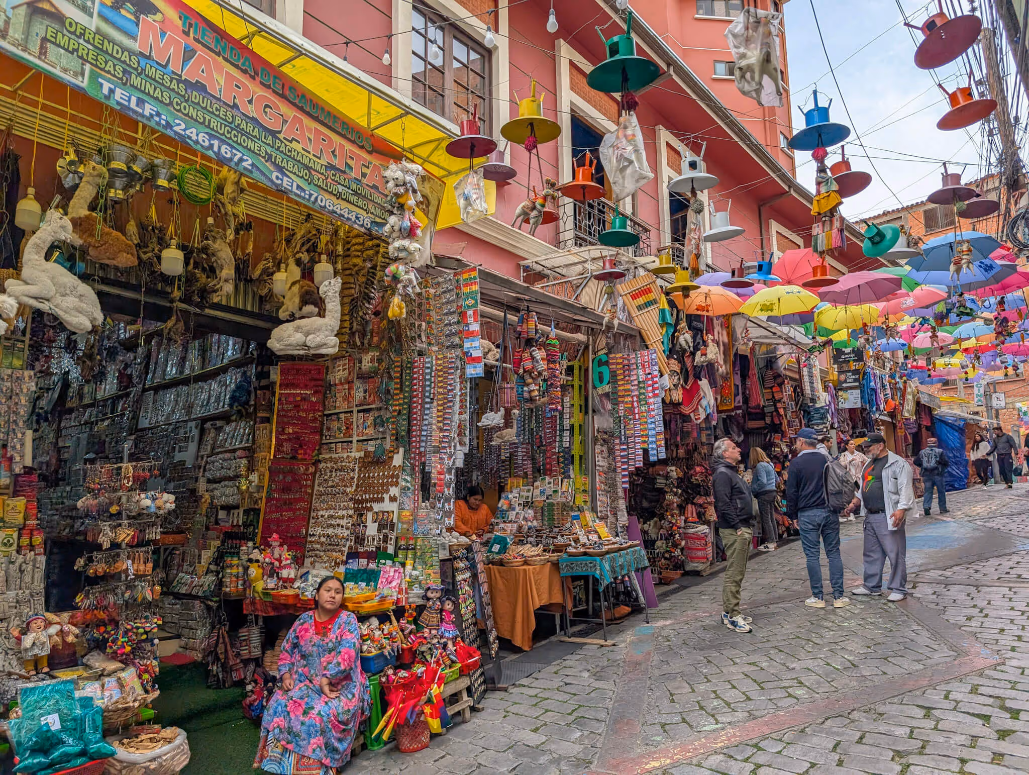 By the time we reached Bolivia, we had gradually passed the 10,000-foot elevation mark, which helped with acclimation. However, flying from Uyuni to La Paz, we found ourselves at over 14,000 feet, which was a noticeable change. La Paz is a fascinating city located in a steep bowl. We took a walking tour through the city center and the Witches Market, and the following day we visited the Valley of the Moon and rode the Teleferico, a system of cable cars that provided a unique and efficient way to see the city from above.