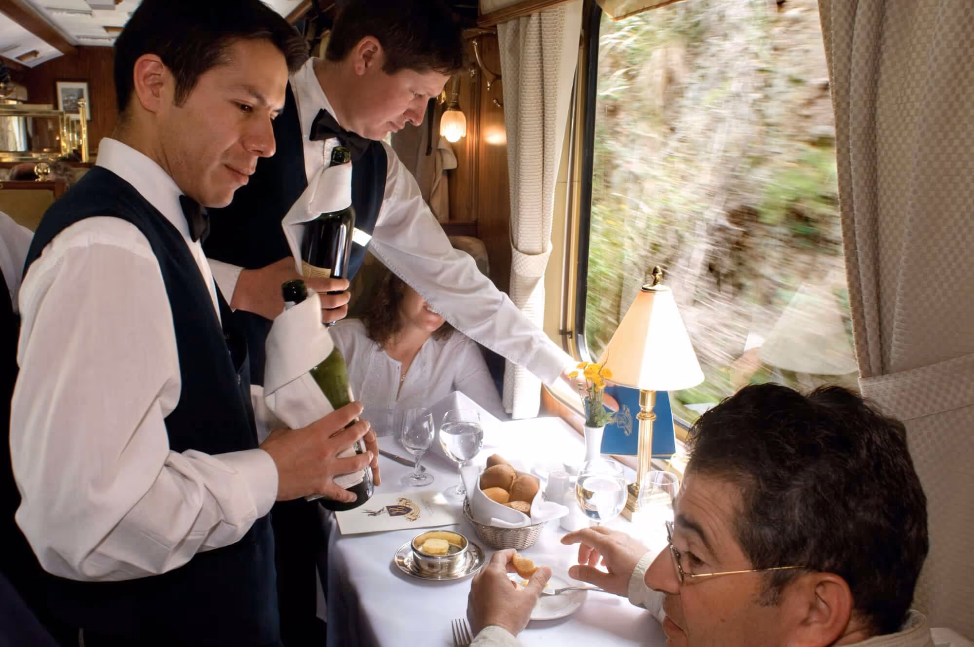 Indulge in an unforgettable journey on the Hiram Bingham Train, where exceptional service and exquisite dining await. Savor a delightful brunch as you travel from Poroy (Cusco) to the enchanting Machu Picchu. On your return journey, relish a lavish gala dinner under the starry Andean sky, creating a truly magical experience.