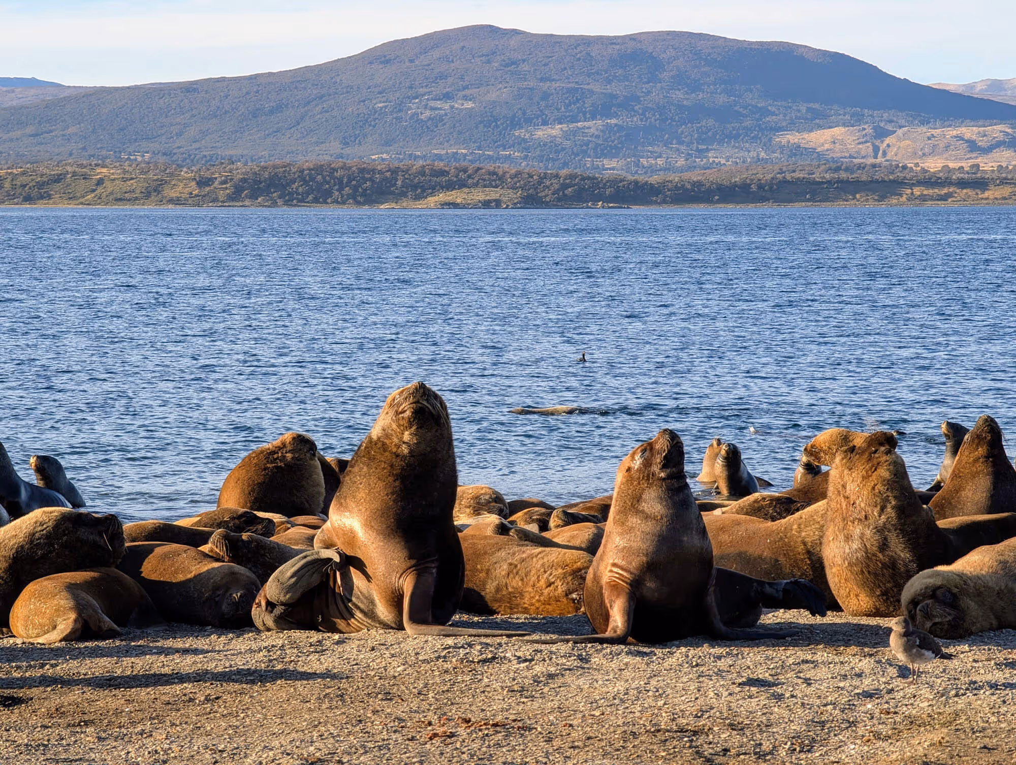 But the wildlife wonders of Martillo Island don't end with the penguins. Keep your eyes peeled for the playful South American sea lions that also call this island home. You might spot them basking on the rocky shores, their booming barks echoing across the water, or even see them gracefully swimming alongside your zodiac. This dual wildlife encounter adds another layer of excitement to your Martillo Island adventure.
