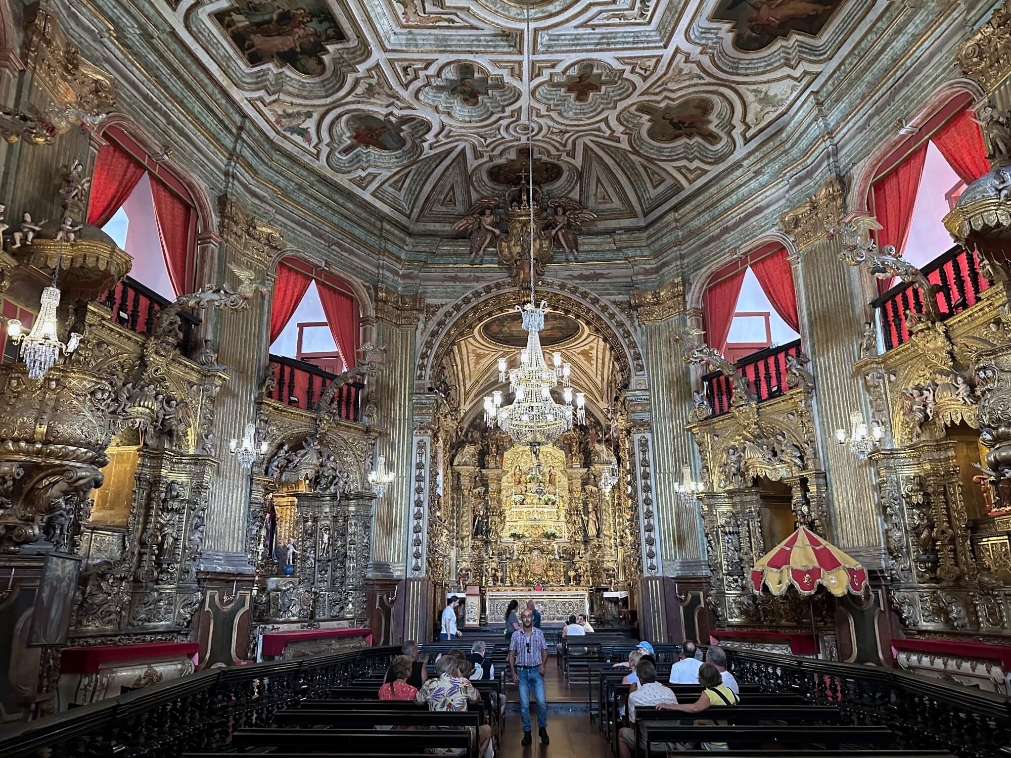 Ouro Preto’s skyline is dominated by its baroque churches, among the finest in Latin America. The Church of SĂŁo Francisco de Assis, with carvings by Aleijadinho and frescoes by Mestre AtaĂde, is a masterpiece of colonial art. Nearby, the Church of Our Lady of Pilar dazzles visitors with its golden interior — adorned with nearly 400 kilograms of gold leaf.
