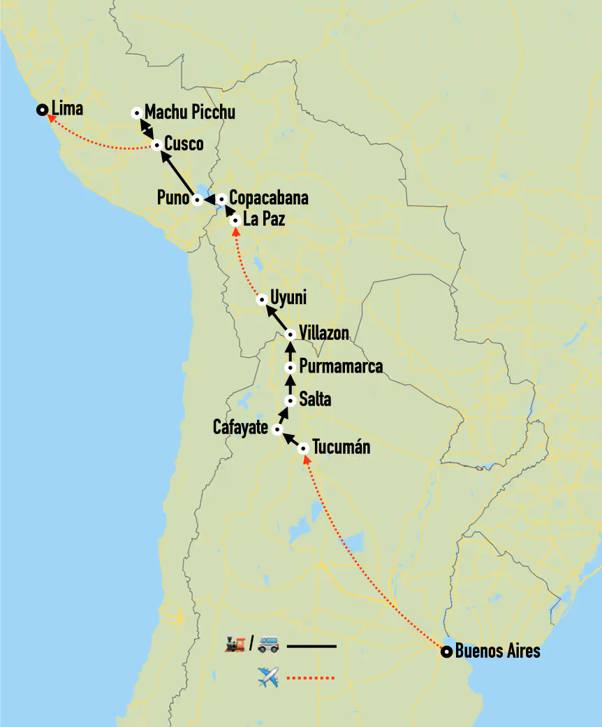 This meticulously curated 21-day expeditions unveils the very soul of the Andes, from the tango-infused elegance of Buenos Aires to the breathtaking heights of the Bolivian Altiplano, culminating in the sacred mystique of Machu Picchu. With first-class service and hand-picked premium accommodations, this adventure is designed for those who desire extraordinary experiences without compromising on comfort.