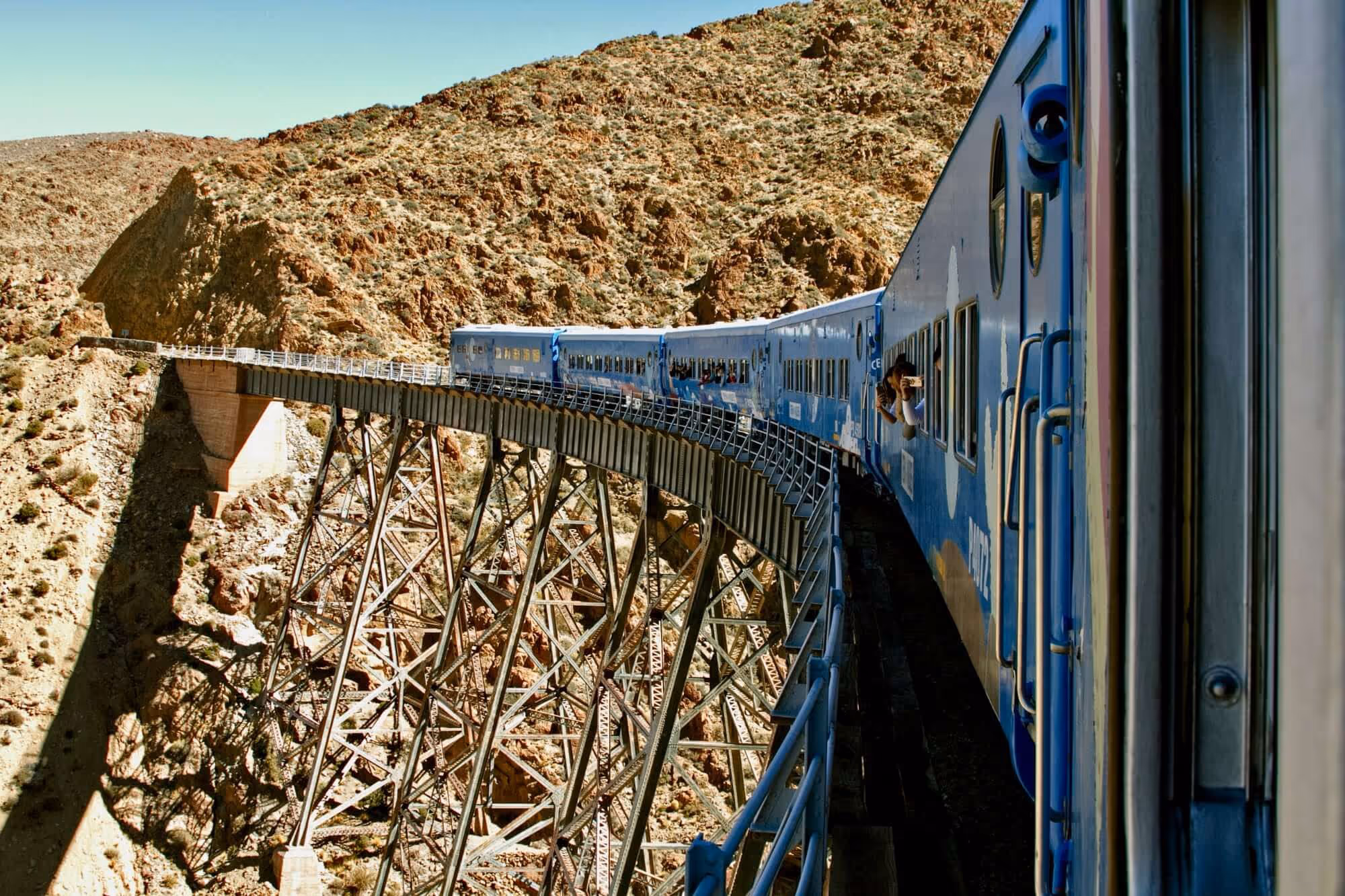 After the scenic bus ride, you’ll arrive in the remote highland town of San Antonio de los Cobres, sitting at 3,775 meters (12,385 feet) above sea level. Here, you’ll board the famous blue train for the highlight of your journey: the ride to the Polvorilla Viaduct.