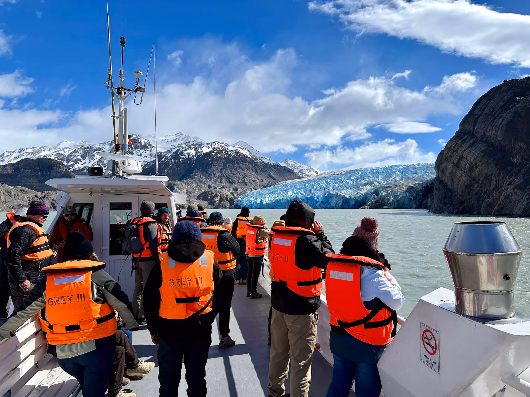 One of the park’s crown jewels, Glaciar Grey, spills into Lago Grey with breathtaking force. Here, vast shards of blue ice break away and float silently past as you glide across the lake by catamaran — a front-row seat to nature’s slow-motion masterpiece.