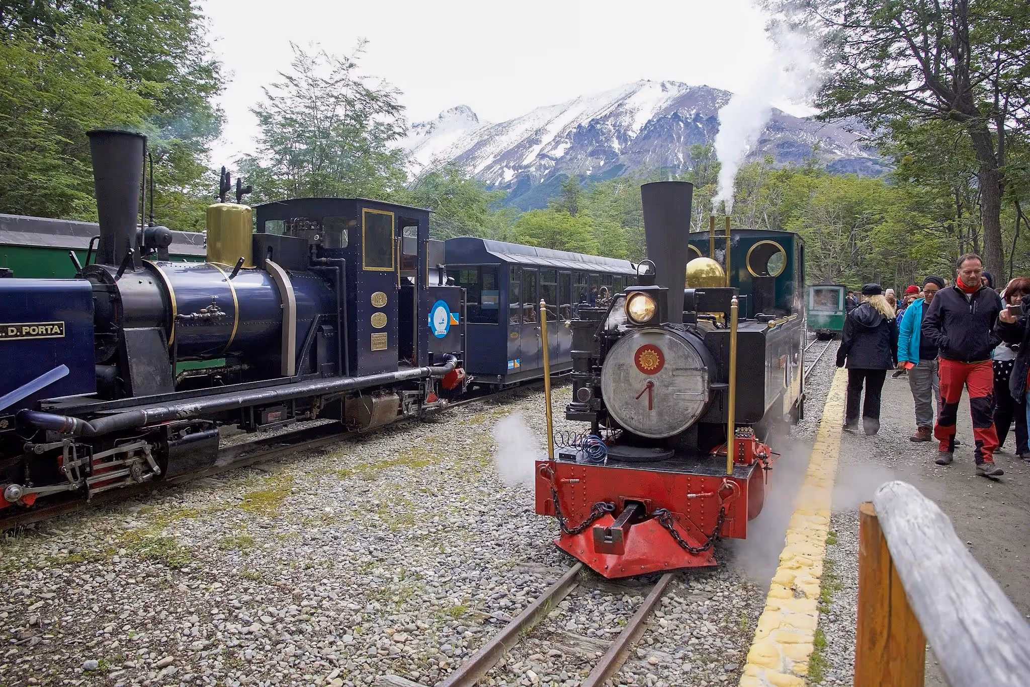 The line continues to the National Park Station, the gateway to Tierra del Fuego National Park, where trails wind through pristine forest and along rugged coastal inlets shaped by glaciers and time.